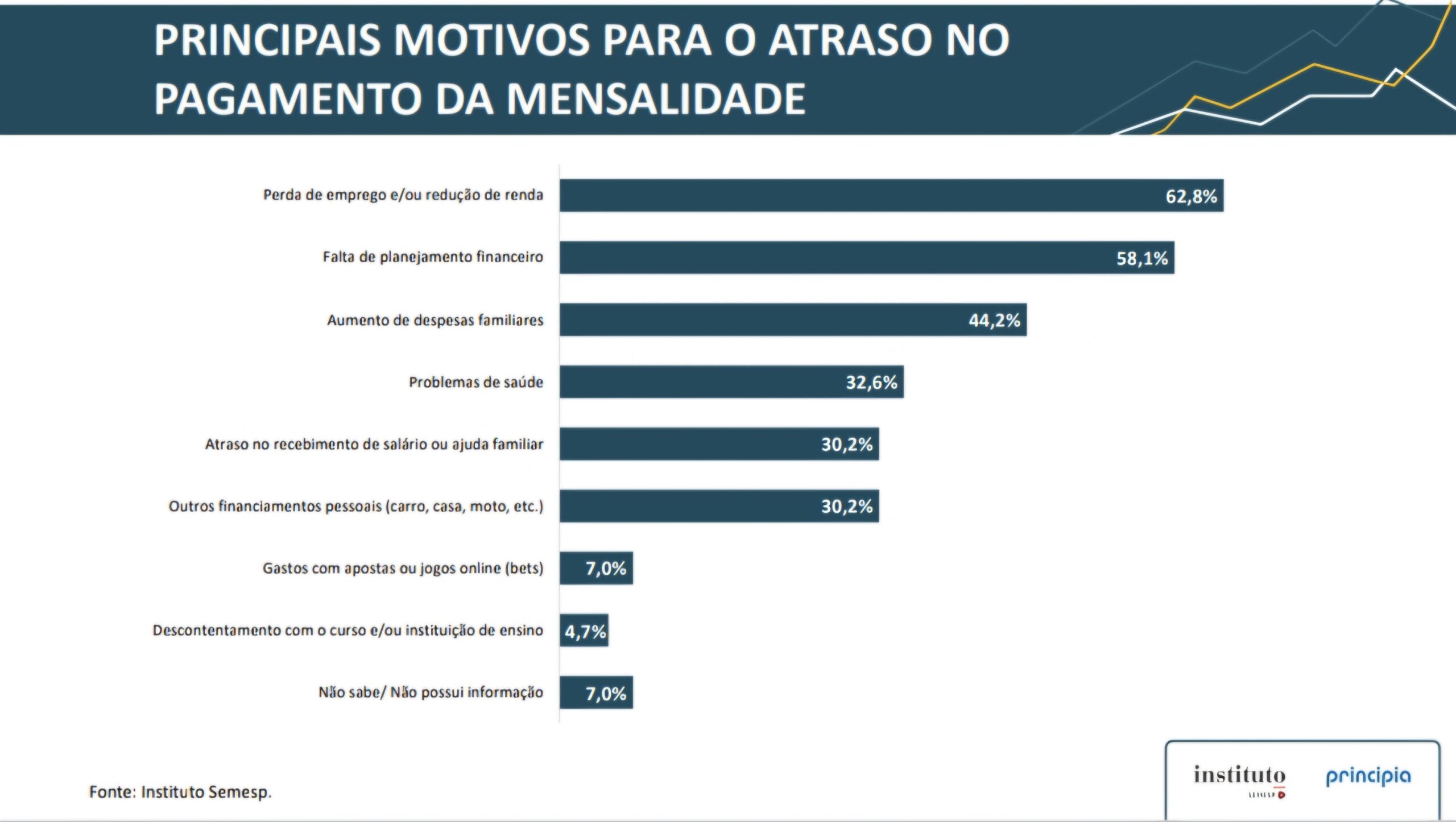 Os motivos mais citados para o atraso no pagamento das mensalidades seguem ligados à instabilidade financeira dos estudantes e de suas famílias.