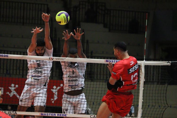O Suzano deu um passo importante rumo à final do Campeonato Paulista Masculino de Vôlei ao vencer o Sesi-Bauru por 3 sets a 1, com parciais de 17/25, 23/25, 25/20 e 22/25, na noite desta terça-feira (7), na Arena Paulo Skaf, em Bauru. Mesmo longe de casa, a equipe da Grande São Paulo se impôs desde o início e confirmou o bom momento na competição.